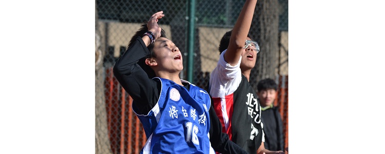 张晓阳同学(左)精彩投篮