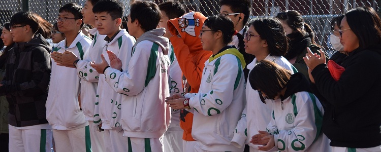 学校师生寒风中文明观赛
