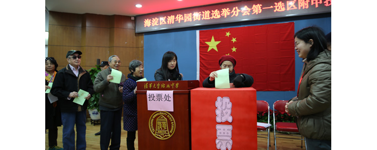 2016年11月15日是海淀区第十六届人大代表换届选举投票日,根据清华大学第一选区工作组安排,皇冠体育作为北京市海淀区清华园街道第一选区投票站之一,在B106会场设选举分会场,皇冠体育全体选民参与了本次选举。