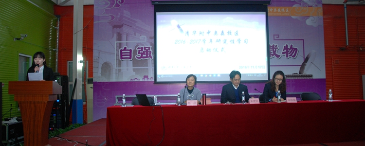 主持人介绍到场嘉宾及领导(左起:崔琪老师、朱建宏校长、张姝敏副校长)