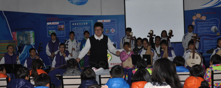乐团的同学们首先在胡军老师的指挥下,演奏了合奏《龙腾虎跃》,乐曲演奏完成后,胡军老师按照中国民族乐器产生年代,向太阳村的50多名孩子分别介绍了中国民族乐器二胡、琵琶等乐器的历史和音色,之后,胡军老师介绍了民乐经典作品《瑶族舞曲》的相关知识,并指挥乐团演奏了此曲,同学们精彩的演奏,博得了太阳村同学以及观众们热烈的掌声。整个慰问演出在乐团演奏的民乐经典乐曲《花好月圆》中圆满结束。