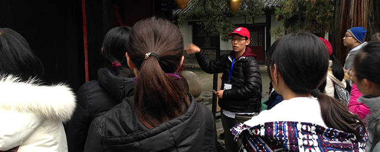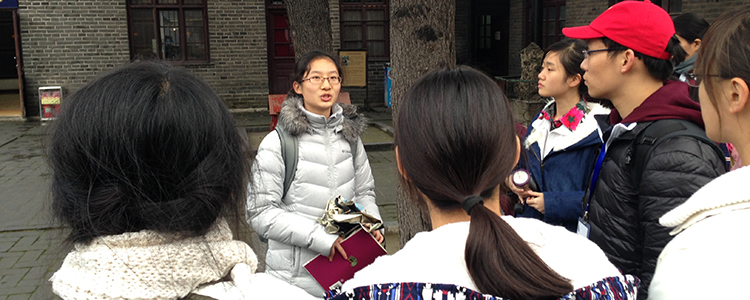 叶心远同学从孔庙的大成门讲到了孔府。他分别从历史典故、文化内涵、建筑构造等角度入手,深入浅出地讲解出各景点的社会内涵,他的讲解既善于旁征博引又不失生动风趣,赢得了师生们的阵阵掌声。