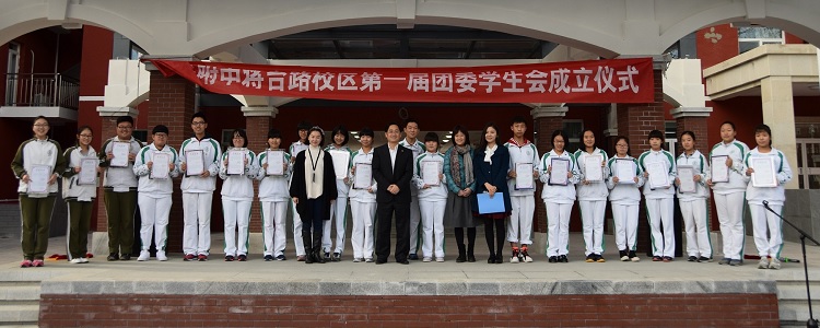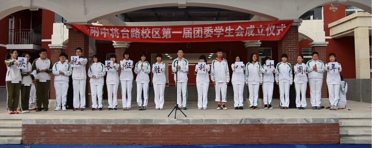 10月28日,皇冠体育将台路校区团委学生会成立仪式在新建成的操场上举行。以长征胜利八十载的契机,寓意团委学生会将踏上新征途。高二和初三年级全体同学380余人参加了本次活动。