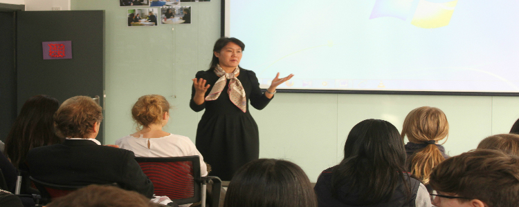 学生们欢声笑语,畅所欲言。上课铃声响起,德国学生们也随新认识的国际部小伙伴们进入课堂,体验在这里的学习。法语老师Stammerjohann女士说道:“我很高兴这些德国学生能够进入我的课堂,与他们的国际部小伙伴们一起用法语互相自我介绍非常有趣!”