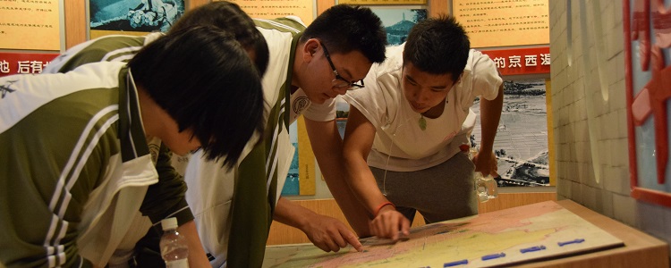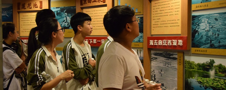 同学们在展厅观看北京消失的部分河湖水面