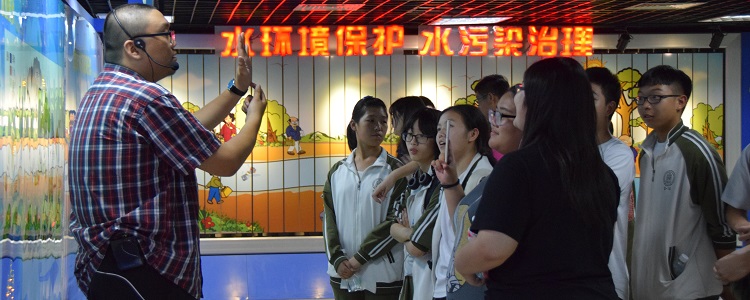 讲解员在讲解水资源保护的重要性和水污染治理的必要性