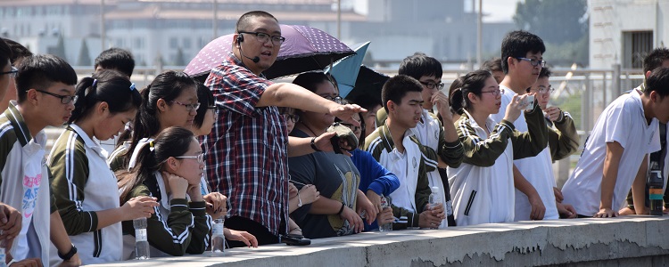 讲解员为同学们做沉淀池解说