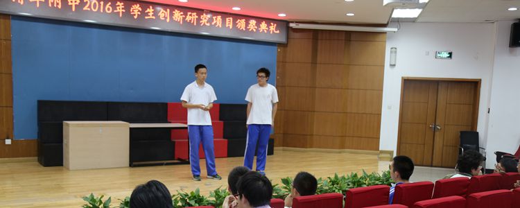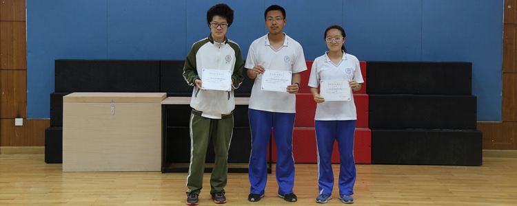 表彰会上,获奖代表分享了项目研究的感悟。一等奖获得者高1412班《北京地区一年中雾霾的分布及其影响因素》项目组讲述了他们项目研究的经历。他们收集了一年中每个月的AQI数据并制成统计图,再考虑风力和温度的变化,利用数学课上的最小二乘法建模计算出回归曲线方程相关系数,从而得出结论。特等奖获得者高1413班的《废电池的危害和处理》项目组代表声情并茂的讲述了在化学实验室的研究过程。实验过程中运用超前地化学知识克服了种种技术难题,实验结果强有力的表明废电池对于水资源的危害,证明了重金属对于人类生存环境的危害。呼吁学生提高对废电池的危害与处理的认识,并为学生正确处理费电池提供了科学可行的方法。