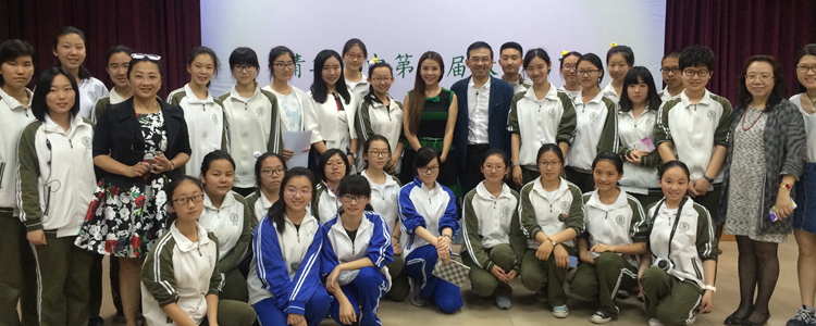 著名主持人朱迅(右2)、王志(右1)与学生座谈