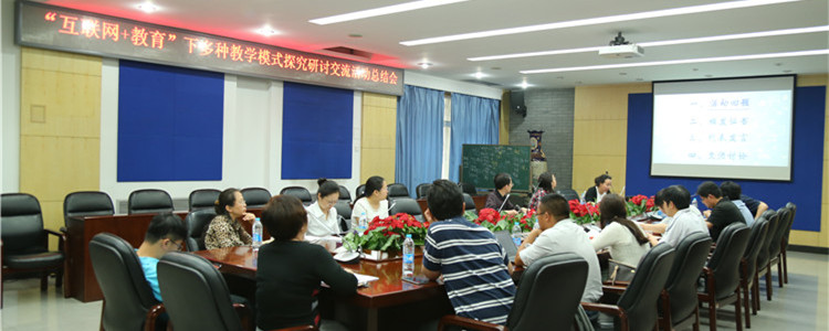 2016年5月11日下午,皇冠体育“互联网+教育”下多种教学模式探究研讨交流活动总结会在B102召开,皇冠体育副校长徐文兵,教学管理与研究中心主任尹粉玉、朱培、副主任张苏,各学科教研组长,以及参与本次活动的讲课及发言教师,共20余人参会。教学管理与研究中心副主任张苏主持会议。