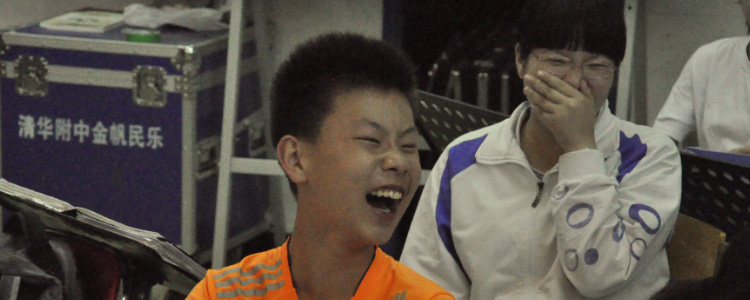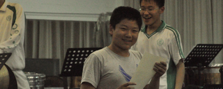最后,在全体同学们热烈的掌声中和“加油!加油!考回来!考回来!”的呐喊声中,初13级的同学们把自己的名牌别在了民乐团的团旗上,并与大家合影留念。
