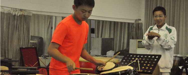 毕业生代表房鸿翰同学为同学们演奏了《鼓上飞舞》,为初三的学生们加油助威,他的演奏博得了在场团员的喝彩。