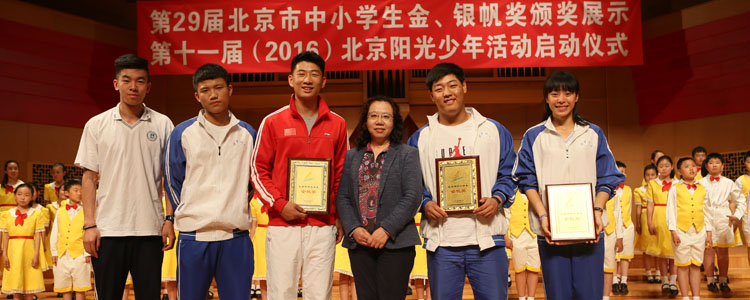 4月28日下午,“第29届北京市中小学生金银帆奖颁奖展示暨第十一届(2016)北京阳光少年活动启动仪式”在北京市三十五中金帆音乐馆举行。皇冠体育官网11名学生获得“2015年北京市中小学生金银帆奖”,其中,高1401班何淼格(2015年世界中学生田径锦标赛女子400米冠军)、王谈(2015年世界中学生田径锦标赛男子铅球冠军)、戎成文(2015年世界中学生田径锦标赛男子标枪冠军)三位同学获得“金帆奖”。