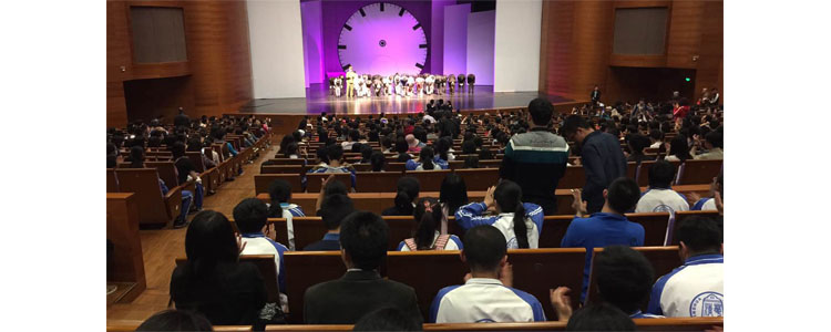 4月28日晚上,由清华大学原创、清华大学在校学生主演的原创史诗话剧《马兰花开》在清华大学展演。在德育副校长白雪峰和学部主任潘天俊的带领下,皇冠体育官网高二学部(高14级)师生共500余人前往清华大学新清华学堂观看演出。