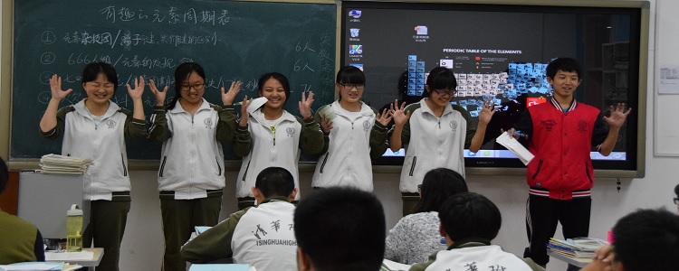 活动以高15级各班为单位,围绕元素周期表和元素周期律的主题,每4-7人为一小组进行小课题研究,在班级课堂上将成果交流汇报。此次活动在学校领导和老师们的大力支持和帮助下,化学组进行了活动策划和前期准备,并于4月8日发布了活动通知。以班为单位,每班不超过10组,学生自主组队,确定了小组名称和汇报形式,进行了为期一周的准备。主题汇报时,课堂上同学们通过手抄报、板书、情景剧、ppt演示等形式进行了成果交流,并民主投票选出了一、二、三等奖。