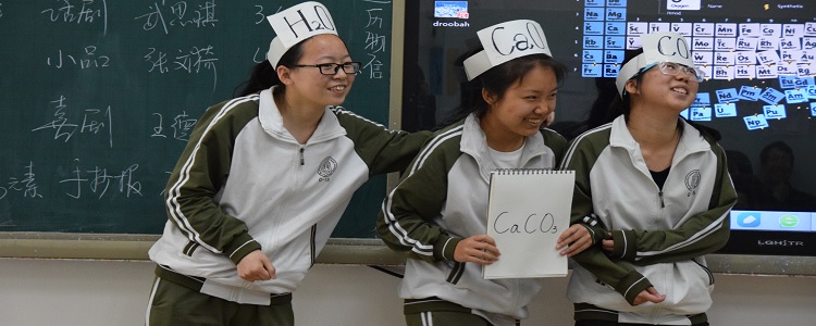 高15011班的“1956”组表演“氧化钙和二氧化碳的故事”