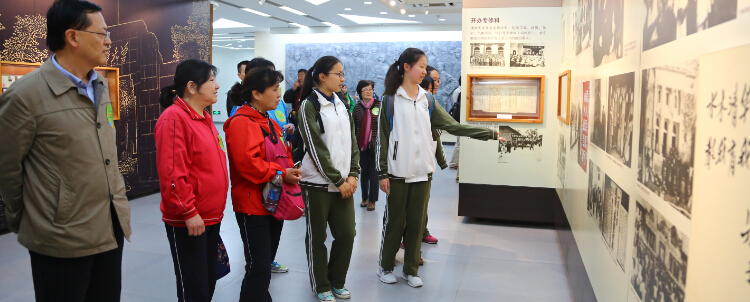清华大学校史馆内,学生志愿者为校友们讲解清华大学105年校史,大家一起感受百年清华的荣光与责任。