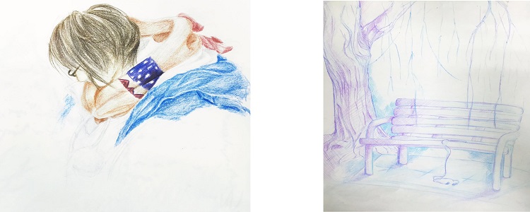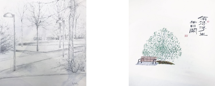 课后,学生提交了写生作业,对比上学期的写生作业,可以很明显看到学生的进步和新的思考。美育教育,最为可贵的便是启发学生的天性,发展原本属于他们自身的能力。相信本学期的艺术特色课程同样会让同学们感受到艺术的魅力。