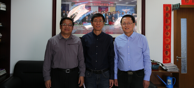 解巨钊副校长、刘德校友、王英民老师(左起)