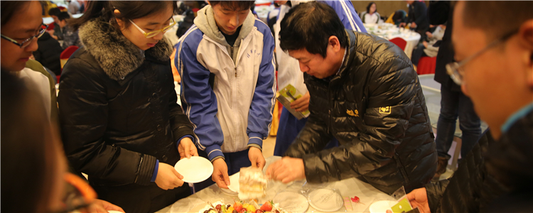 白雪峰副校长为考察期间过生日的同学切蛋糕