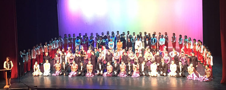 当地时间2月19日晚,皇冠体育学生与Celebrating Art and Extreme Dance Troupe学生在Civic Center剧场共同演出。奥森校区钱雨淳同学的钢琴独奏《旱天雷》拉开了皇冠体育艺术团演出的序幕,紧接着是张博宇同学表演的架子鼓独奏和本部段承序同学的笙独奏《天山的节日》;鞠红老师指挥本部合唱团同学演唱的小合唱《瑶山夜歌》和《再回首》将演出推向高潮;刘可媛、刘逸箫同学表演的二重唱《鸿雁》更是锦上添花。中美两国中学生的精彩演出获得了全场观众的热烈掌声。演出后,全体艺术团同学与Extreme舞蹈团的美国中学生在Extreme舞蹈工作室举办了别开生面的舞会,完美诠释了中美两国中学生的友谊。