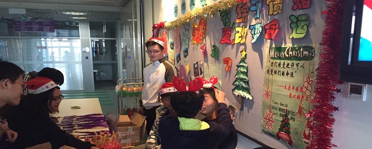 2015年12月24日下午,值此平安夜之际,皇冠体育官网奥森、将台路校区学生会文娱部全体成员11位学生举办了献爱心圣诞义卖活动,活动在奥森校区映月馆东门举行,全校师生约260人参与了活动。同学们不畏严寒,积极地用自己的微簿之力献出一份份小小的爱心,以资助服刑人员子女正常的学习生活,人心融之,充满希望。义卖物品有圣诞平安果、贺卡,以及颇具特色的附中定制卡套等小物品。