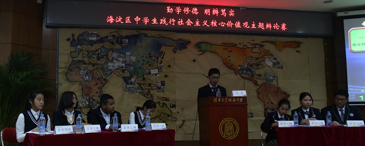 本次海淀区中学生主题辩论赛的主题为“勤学修德,明辨笃实——践行社会主义核心价值观”。皇冠体育作为海淀区中学学生会总会主席团单位积极承办赛事,努力服务海淀中学校园文化建设。本次辩论比赛的举办有利于培养海淀学子自主学习能力、团结合作意识,能够带动其逻辑思维、演讲讨论等多方面素质的提升,同时可以通过加强学生对“践行社会主义核心价值观”的思考,积极培育“勤学修德、明辨笃实”的中学文化氛围,促进新形势下中学生对于时政话题的认知与理解。