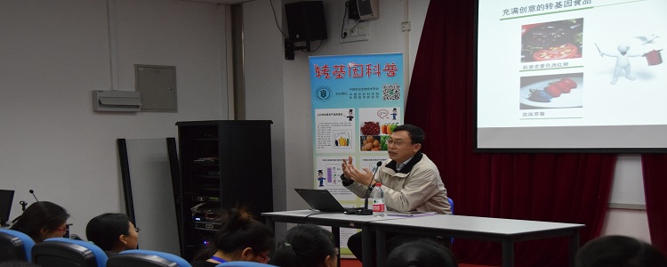 张春义副所长首先以通俗易懂的方式向学生们讲授了什么是转基因,以及转基因的过程;其次又介绍了国内外已上市的转基因作物,包括转基因抗虫棉和转基因番茄等,最后围绕“转基因是否安全”问题的探讨将本次讲座推向高潮,现场气氛热烈,张副所长逐一回答学生的提问。