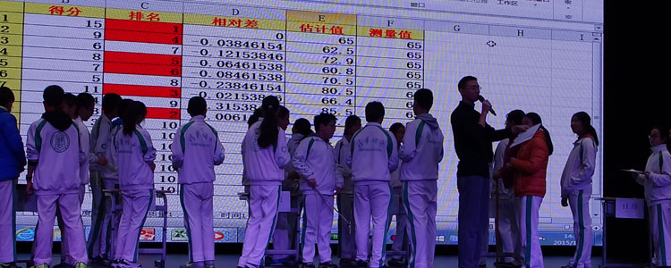 11月26日下午,皇冠体育初14级在食堂三层报告厅举办学科特色活动——“方寸之间、感受科学”之物理估测大赛。活动分四项内容进行——估测长度、估测质量、估测温度和估测时间。初14级全体同学参加活动。每个班分别根据四个竞赛项目,选出16名同学代表本班参加比赛,并根据同学估测值的相对误差进行排名,排名取前八名,分别给予一定的分数奖励,最后算出总分。