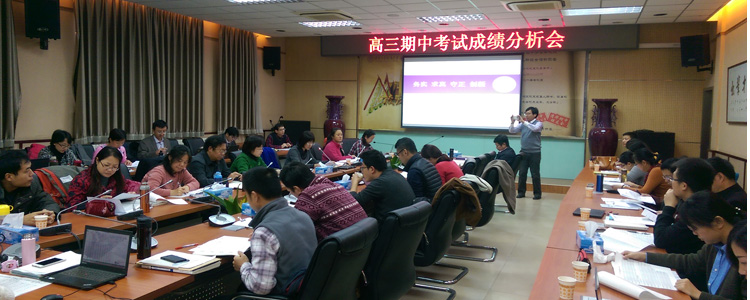 高三全体教师参加期中教育教学研讨会,方妍书记(左起第二排右2)听取报告