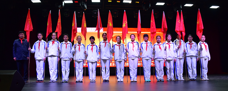 名单宣读完毕后,白雪峰副校长为全体初15级少先队中队代表授中队旗。