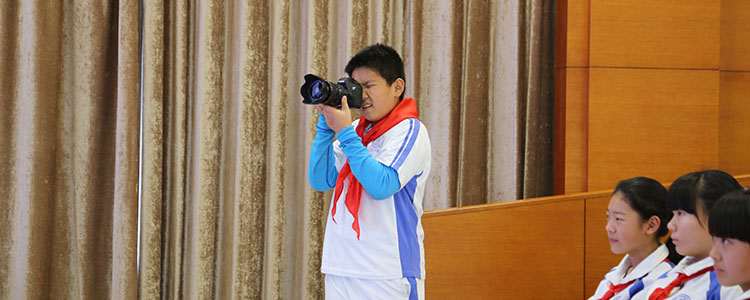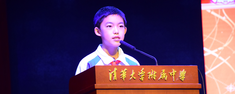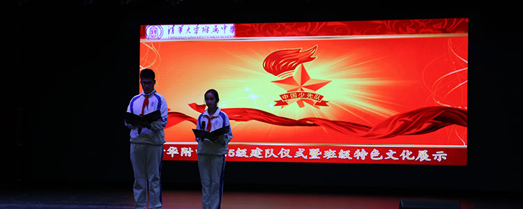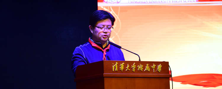 在鲜艳红领巾的映衬下,少先队员代表、初15级联合中队中队长张同和同学上台发言,他结合本月刚刚圆满完成的附中百年庆生活动,呼吁全体少先队员将以强烈的进取心和高度的责任感维护附中荣誉,进而维护少先队荣誉,积极向团组织靠拢。