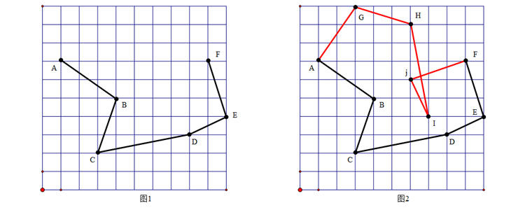他们发现在图1中,在给定的正方形网格里有一条折线ABCDEF,求作另一条折线AGHIJF,满足AB垂直于AG,BC垂直于GH,CD垂直于HI,DE垂直于IJ,EF垂直于JF,如图2,当求作的折线唯一存在时,就是一个特殊的图形,他们称这个题目为一个形独。以此为基础,在皇冠体育官网数学组老师和同学的努力下积累了大量的形独题目,编写了《形独》一书,于2012年9月由清华大学出版社出版。