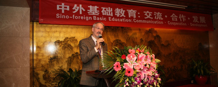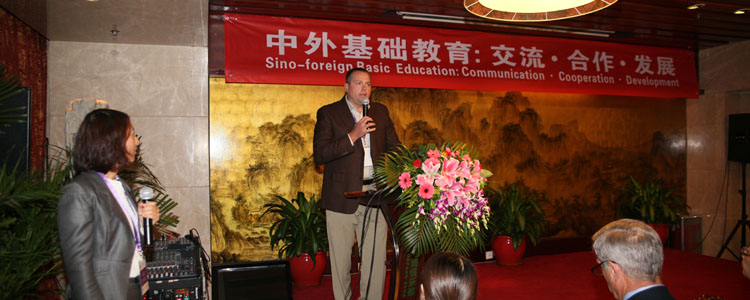 北京大学附属中学王铮校长阐述了几十年来学校与北京各大国际学校的互动,在互相学习的基础上,北大附中提倡和鼓励创新精神,重基础知识、重个性展现、重能力培养、重学生发展,充分尊重发挥学生的主体性。