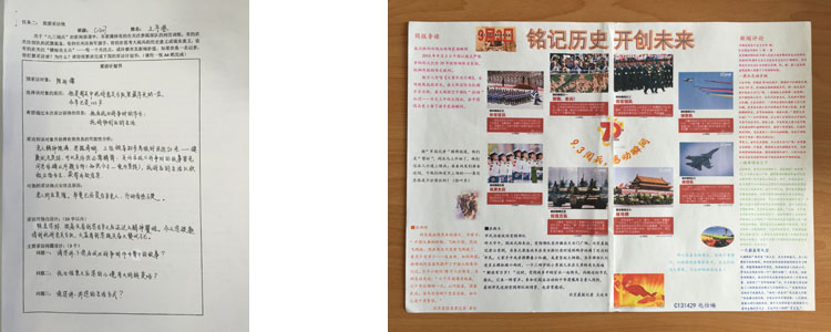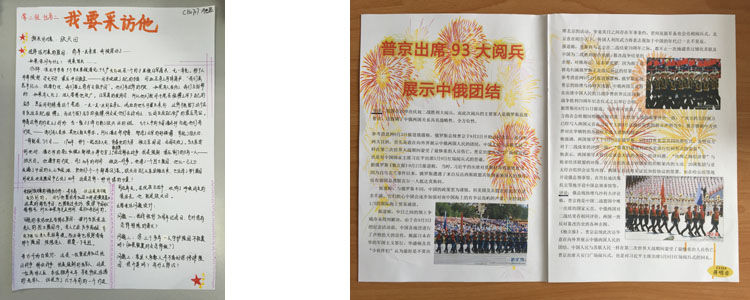 同学们在充满自豪与兴味地观看了纪念大会及阅兵式之后,纷纷将自己的所感所思用充满新意的形式表现出来,收获切实而深刻。