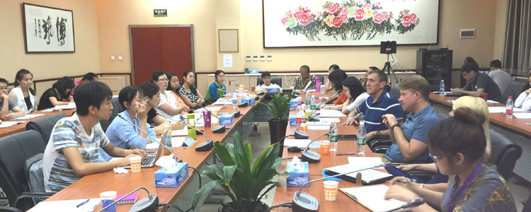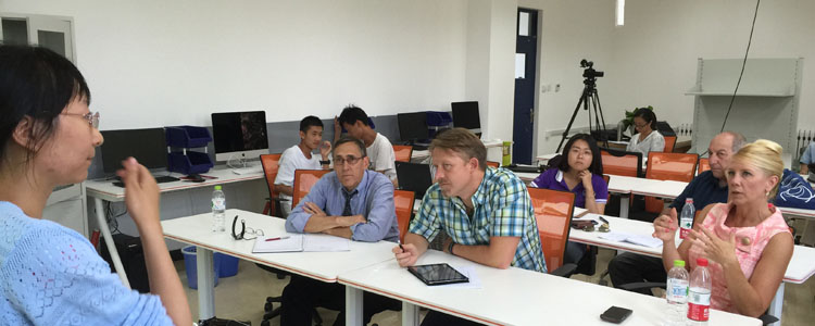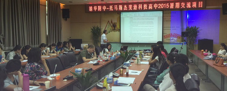2015年7月13~17日,美国托马斯•杰斐逊科技高中副校长Tinell、科技实验室总主管兼神经实验室主任Mark、计算机科学实验室主任Michael三位老师到皇冠体育进行交流服务,并举办了为期五天的“研究类课程的实验室建设”研修活动。皇冠体育物理、化学、生物、地理、通用技术、计算机等学科的30余名教师以及参与实验室选拔与评估的10名学生参加了此次研修活动。