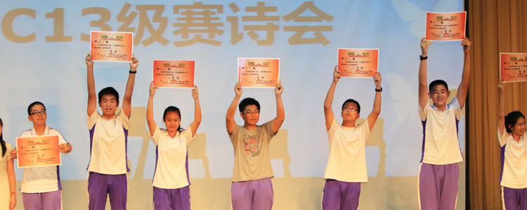 本次活动由颁奖、诗歌背诵默写比赛、学生获奖诗作朗诵、教师优秀诗歌朗诵等环节组成。最终,初1313班获特等奖;初1309班获一等奖;初1301班、初1314班获二等奖;初1307班、初1308班、初1310班获三等奖。