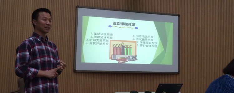 会议围绕语文学科教育观开展。首先由邱道学老师作了“我的语文学科教育观”的汇报,他将自己的语文学科教育观分为“课程体系”和“教师专业化发展”两部分,并分别作了详细的汇报。最后邱老师总结说,语文课程体系是语文学科教育能够有效开展的根本保证,语文教师专业化发展是语文学科教育得以顺利实施的有力保障,也是中学语文教师发展的必然要求,因此我们必须认真搞好课程体系建设,走教师专业化发展之路。