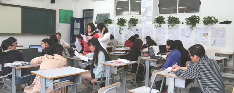 高一学部主任潘天俊主持会议并对期中考试成绩进行了总结和分析,详细介绍了期中考试研讨周的安排,并对期中考试之后的工作进行了简单部署。会议之后,各班主任组织班级任课教师进行班级会诊,为接下来与学生进行的点对点谈话做好准备。会议旨在了解班级动向;为师生的教与学提供诊断信息;为文理分科提供数据。