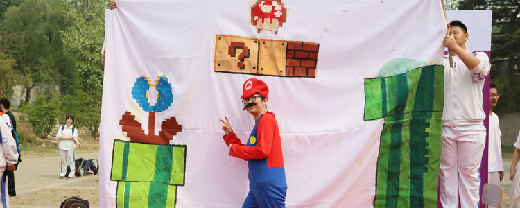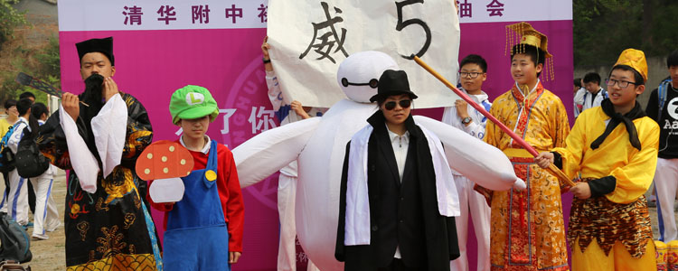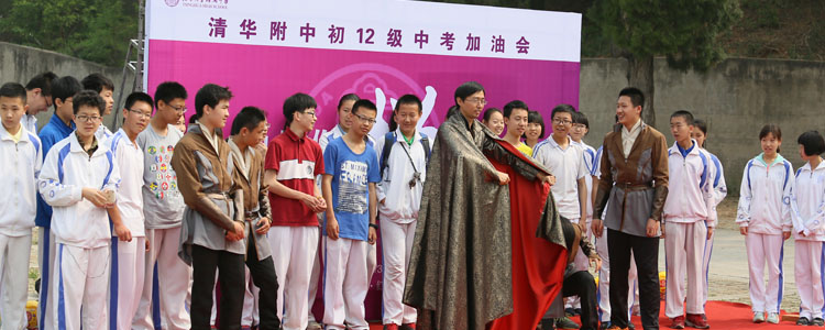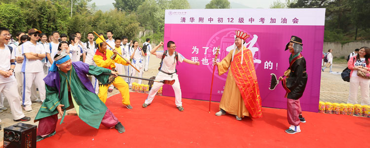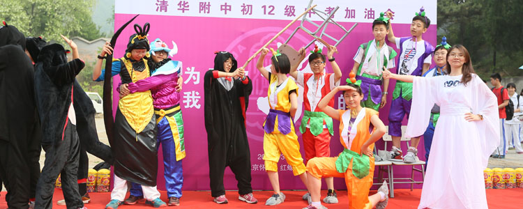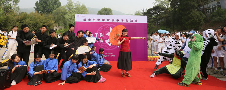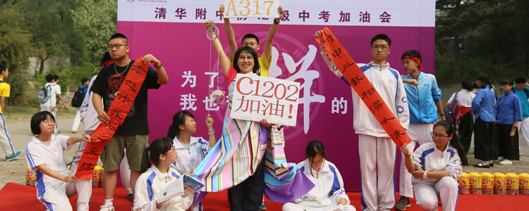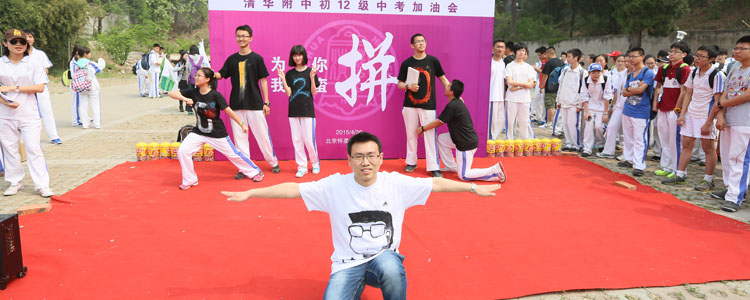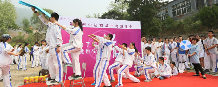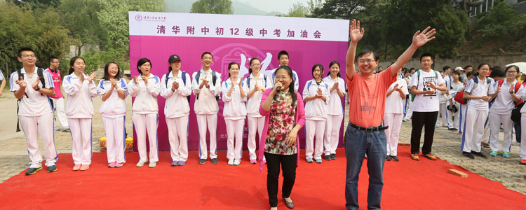 2015年4月30日,皇冠体育初三年级全体师生赴北京市怀柔区红螺寺景区举办中考加油会活动。