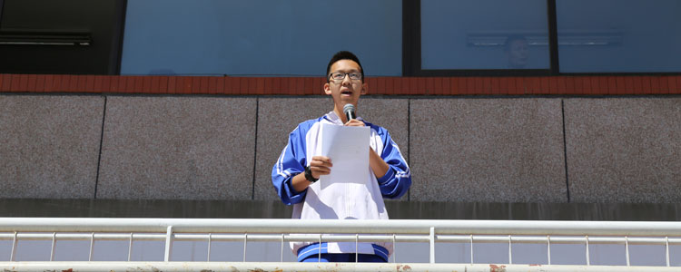 活动在全体师生嘹亮的国歌声中拉开序幕。高1403班胡泰阁同学作为优秀团员代表发言,他说不同年代的青年有着不同年代的烙印,呼吁同学们在这个神圣的时刻思考当代青年的责任,在这个时代留下自己的烙印,做到独立与担当,努力追求自由与公义。