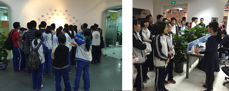 学生首先参观了创新工场大厅的logo墙,很多大家熟悉的公司如“知乎”、“暴走漫画”、“蜻蜓FM”等都是创新工场投资的项目。在参观了创新工场内部及各个公司的工作区域后,中国第一家开发整套iPad英语培训体系的教学机构“盒子鱼”项目的创始人黎小说先生跟同学们分享了他的创业历程,最后,创新工场的投资总监张丽君女士为大家介绍了互联网公司发展的不同途径以及创新工场选择投资项目的标准,帮助大家了解创业者如何获得最初的资助。在轻松欢快的交流氛围中,学生们了解了很多在学校里和课本上学不到的创业知识。