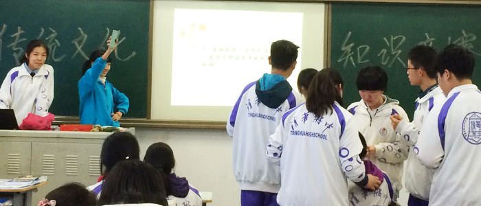 本竞赛以引导学生关注中国传统文化为目的,借鉴电视节目“一站到底”的竞赛形式,内容涵盖经典著作、礼乐传统、对联、民俗、艺术、政治、历史等各个方面,由各班语文联络员负责出题、组题、主持、评奖,将全班学生分成6个大组进行比拼,并评选出优胜组,准备进入下一轮班级间的竞赛。