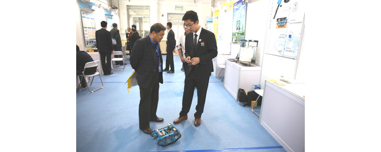 左润泽同学(右)向参观者介绍项目