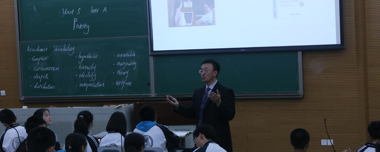 刘桂章老师的研究课以翻转加预习的形式对《通用学术英语》的Social Issues话题进行了讲授,与高二的学生一起探讨经济学理论及美国社会问题,为全体同学和听课教师奉上了一堂富有思想深度理论高度的通用学术英语课。本节课的亮点在于对建立以英语学科为中心,联合其他学科的教学协作体的探索和尝试。引导学生利用英语这一学习工具,探究自然科学、人文科学的专业知识,突出了英语学科的工具性。刘桂章老师特别邀请了对政治经济学颇有研究的邱磊老师对学生关于经济学问题的解答进行了详细点评和深入讲解,使学生在掌握学术语言知识的同时对美国贫困问题有了进一步的认识。