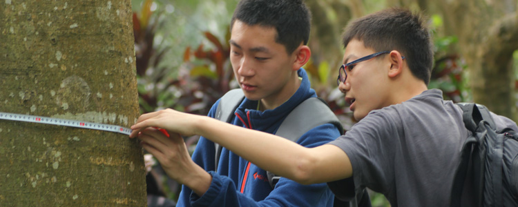 皇冠体育官网学生测量热带树木的胸径