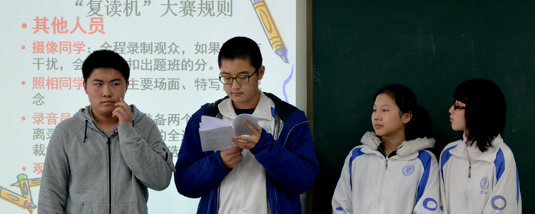 此活动本着让全体同学更加熟悉中考文言文篇目的宗旨,参赛人员全部由抽签决定。每班抽选四名选手,接受其他班级所出题目的挑战。另有监督员对比赛进行纪律监督和对答案正确性的第三方裁决。根据所答对题目的数量与纪律情况确定每班总分。最终,得分最高的初1209班将获得初三语文组老师为他们准备的神秘大奖。