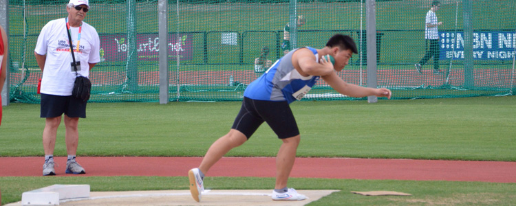王谈获得男子铅球冠军,图为王谈在比赛中