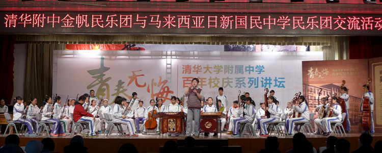 随后,马来西亚学生为附中师生演奏了《春》等合奏作品,附中师生对他们的表演报以了热烈的、长时间掌声。
