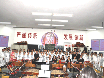 之后,乐团同学们在胡军老师的指挥下,为来访的日本师生演奏了中国民乐经典曲目《龙腾虎跃》及《瑶族舞曲》,之后,徐镝清、王惠仪、马丁帅和刘静宜同学还为日本孩子们介绍了中国的古琴、古筝、二胡和琵琶等乐器,引起了日本师生的强烈兴趣。期间,学校主管外事活动的张洁副书记到场与日本师生进行了交谈并互赠礼物。